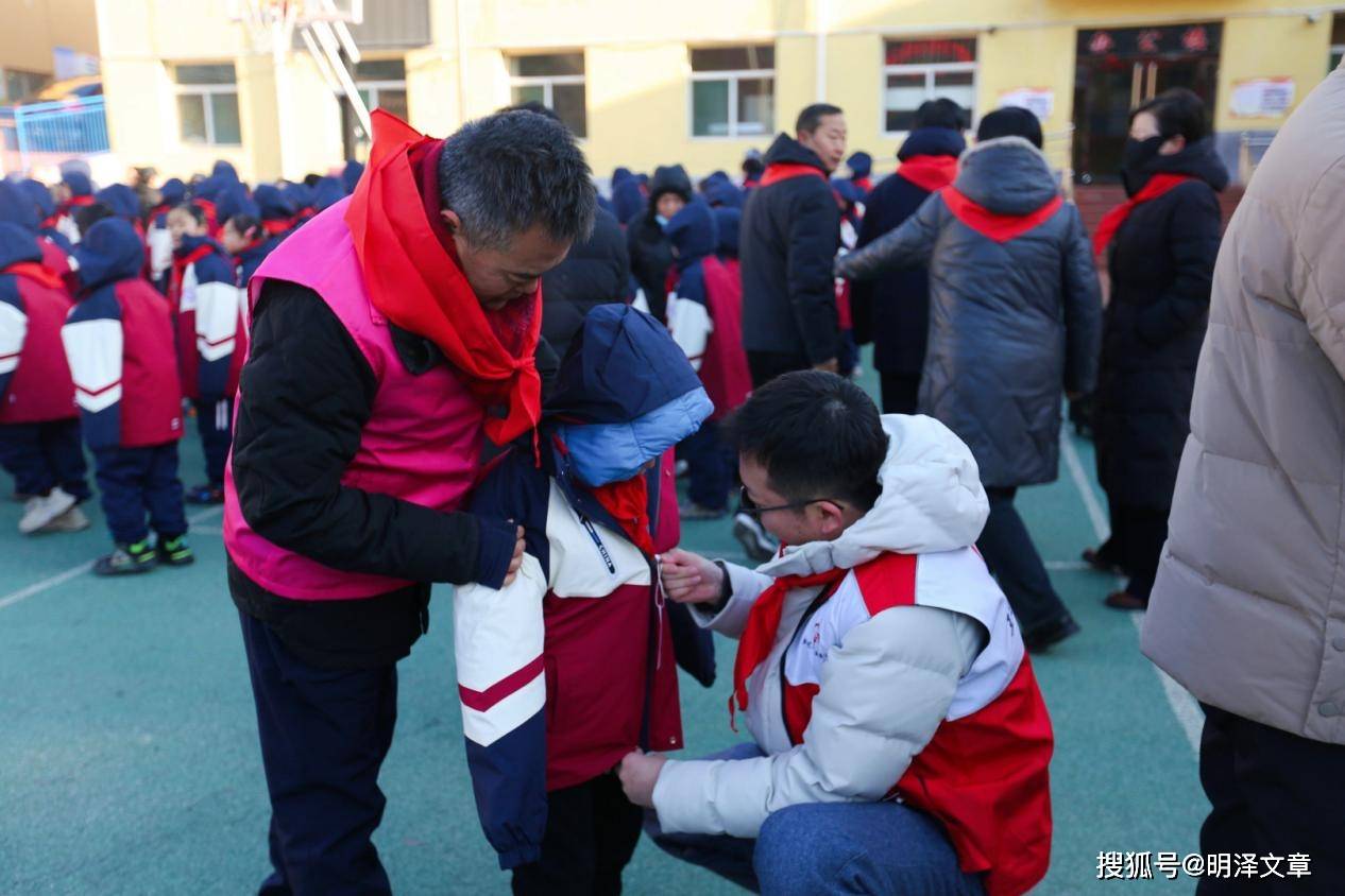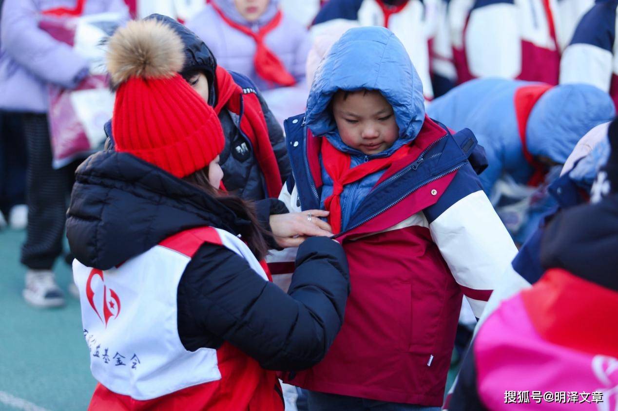 活动现场暖意融融,细微之处彰显人文关怀。孩子们领到崭新棉服后眼中闪烁的光芒,成为冬日里最动人的风景。赵欣、赵志敏等公益人士与志愿者主动蹲下身,为孩子们穿好棉服、拉上拉链,手把手地关爱让爱心在校园中悄然流淌。