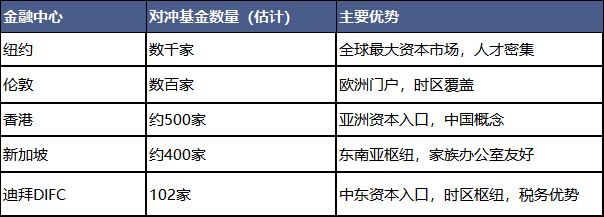 传统上,对冲基金行业高度集中于纽约、伦敦和康涅狄格州格林威治。近年来,香港和新加坡作为亚洲中心的地位也日益巩固。DIFC的异军突起,为这一版图增添了新的一极。